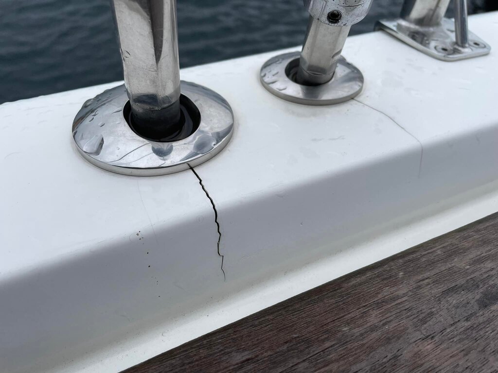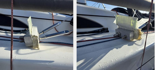 Sa rupture a entrainé un démattage en pleine mer. On voit qu'elle a lâché quelques centimètres sous le pont, ce qui serait assez classique, l'eau s'infiltrant, l'endroit devient vite constamment humide.