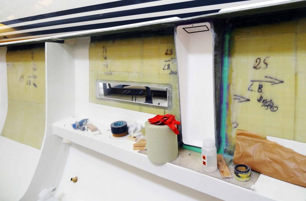 Frank35:Il y a des similitudes, mais la concentration des efforts est bien moindre sur le montage Jeanneau, et c'est pour ca que ça tient. Les six contreplaques de chaque côté (au lieu d'une seule !) et les renforts stratifiés en T répartissent les efforts sur une surface qui dépassent largement celle des contreplaques.·le 27 oct. 16:14