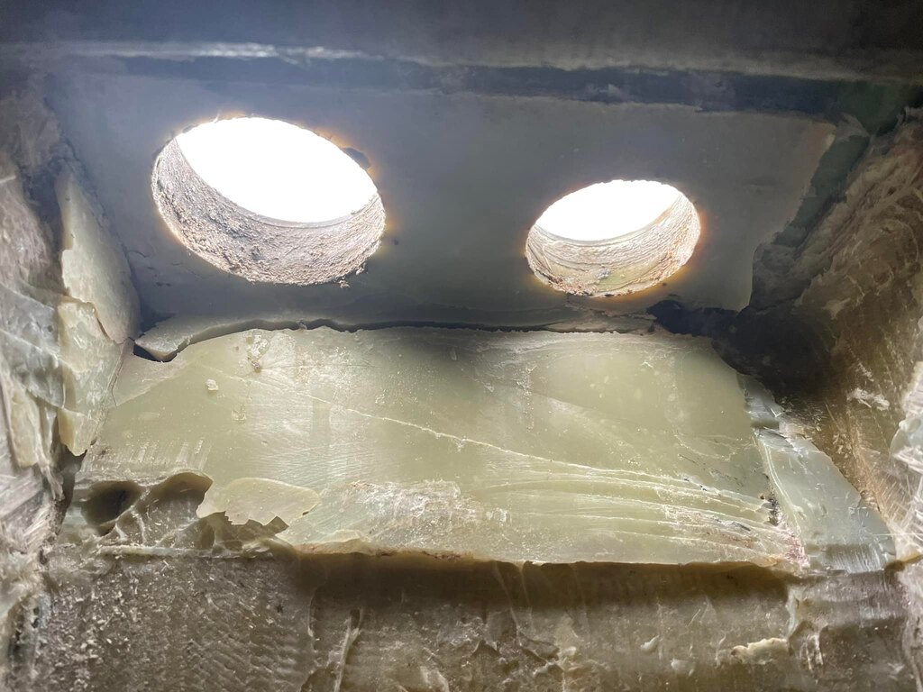 Si on écoute la deuxième vidéo le proprio explique qu'il y avait une pièce inox soudée à l'horizontale sur la (les) cadène(s) et placée sous le pont qui avait pour but de limiter le jeux de la cadène et ainsi les fuites d'eau via le pont que ce jeux provoque après un moment. D'après lui cette pièce étant horizontale a favorisé la rétention d'eau d'écoulement (empêchant le bon écoulement vers le bas) et aurait accéléré la corrosion.