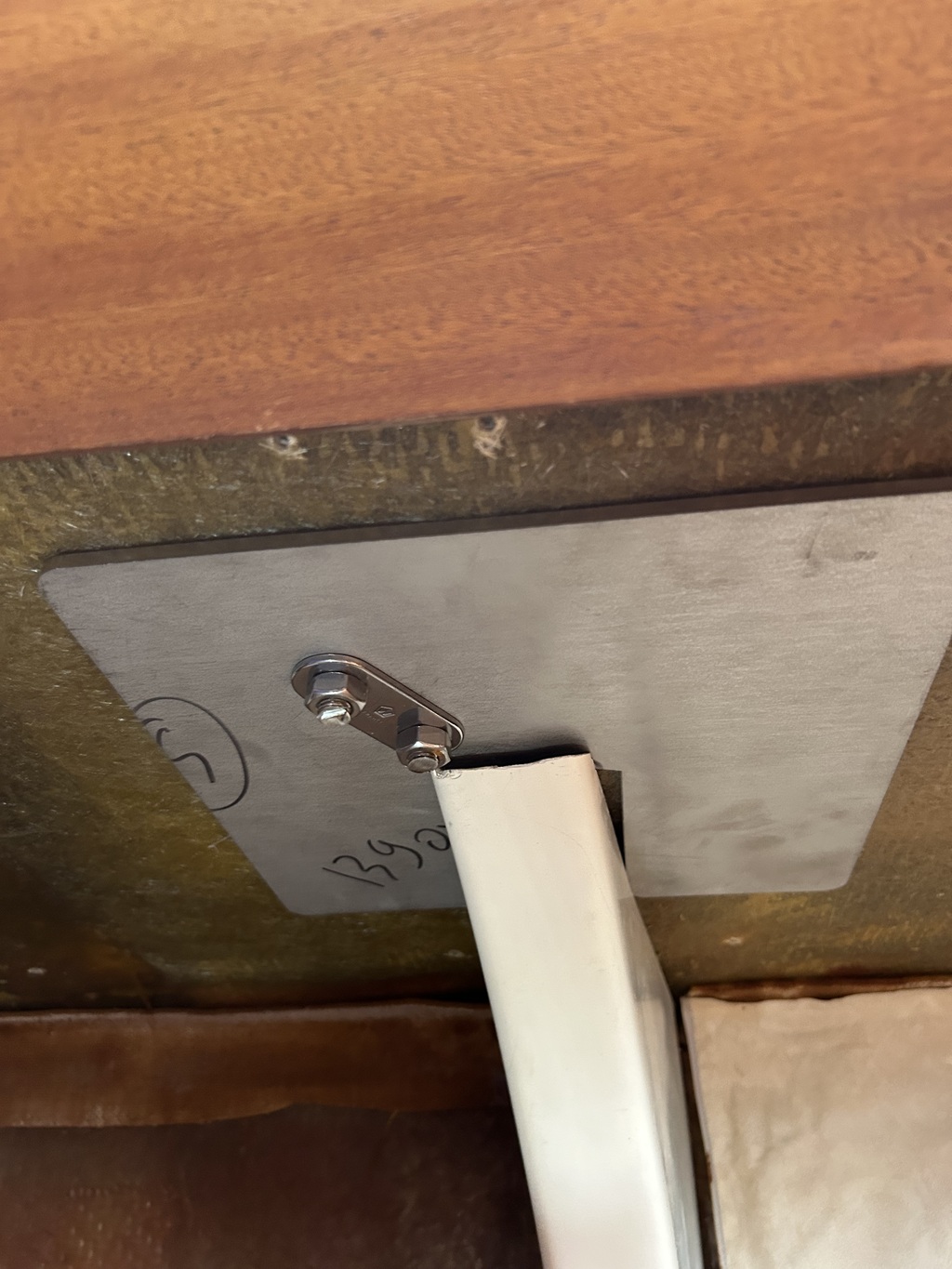 Je retire le vaigrage pour déboulonner la cadène ( j’ai fait également fabriquer des renfort inox 316 avec plan que j’ai trouver sur hisseo:)