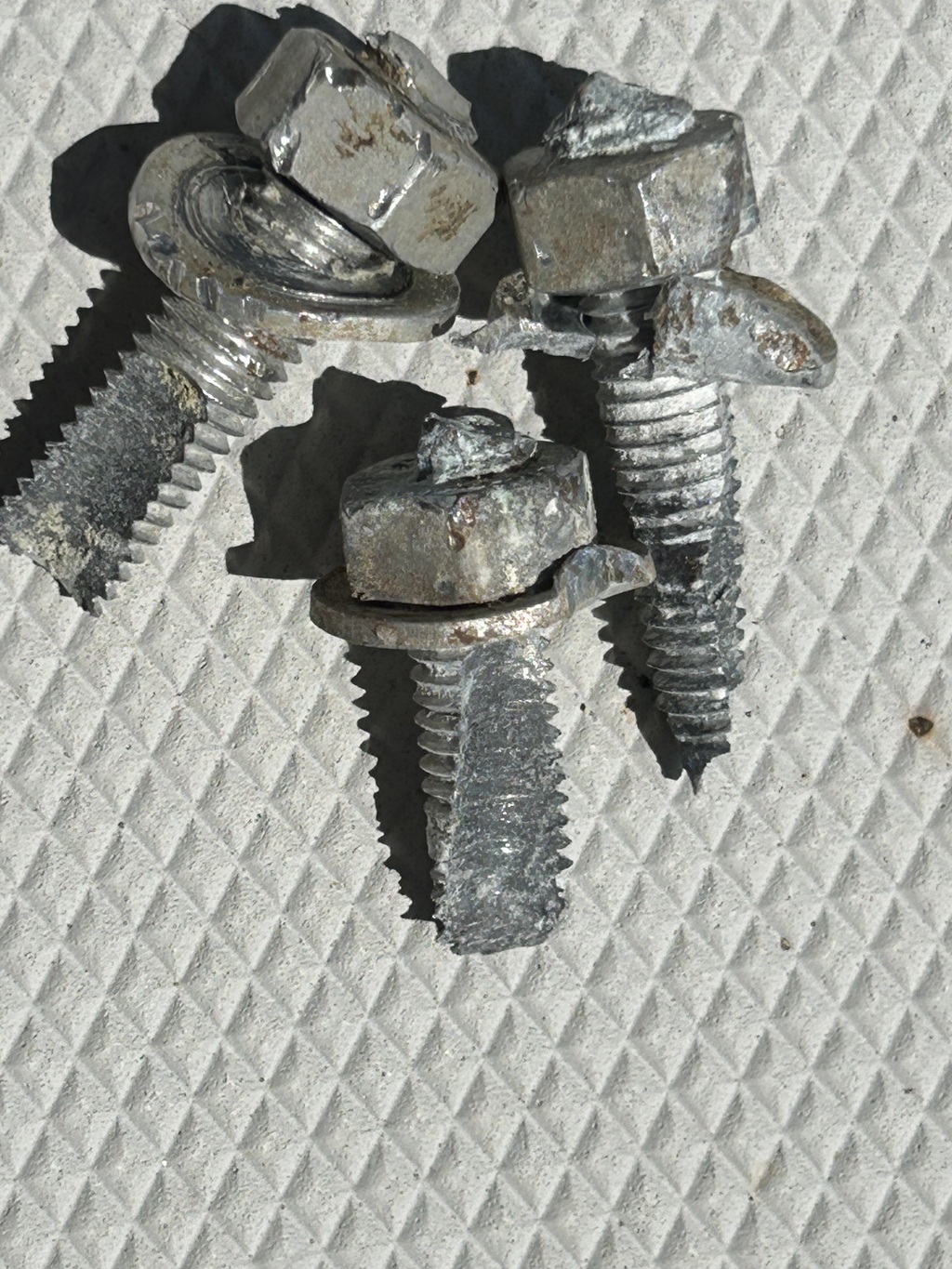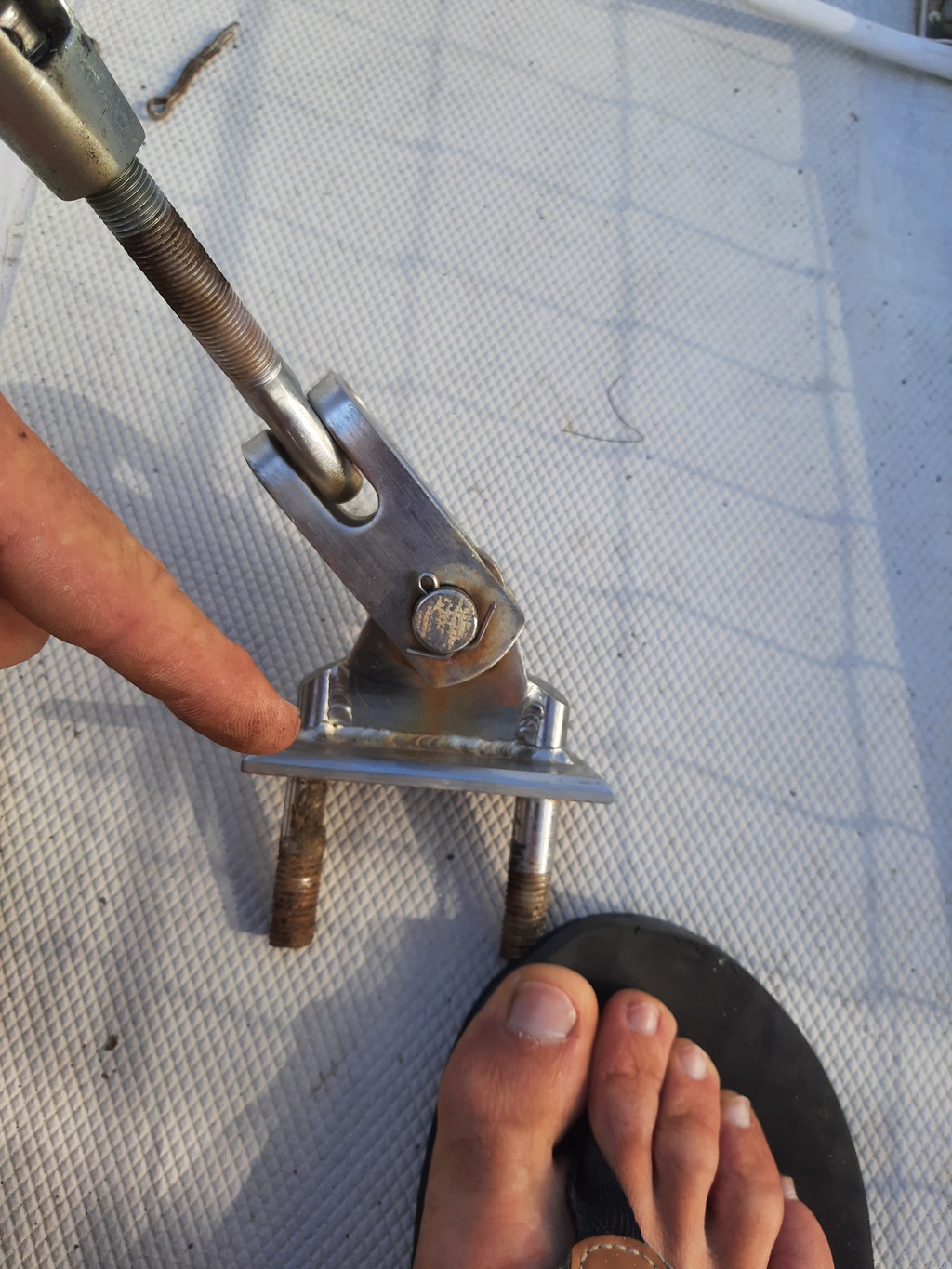 Autre surprise…. L’électrolyse a bouffé mes visses de platine (embase de mat posé sur le pont)
