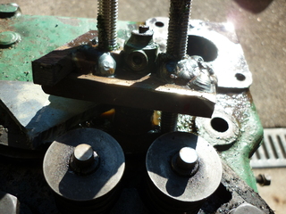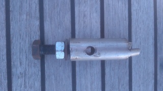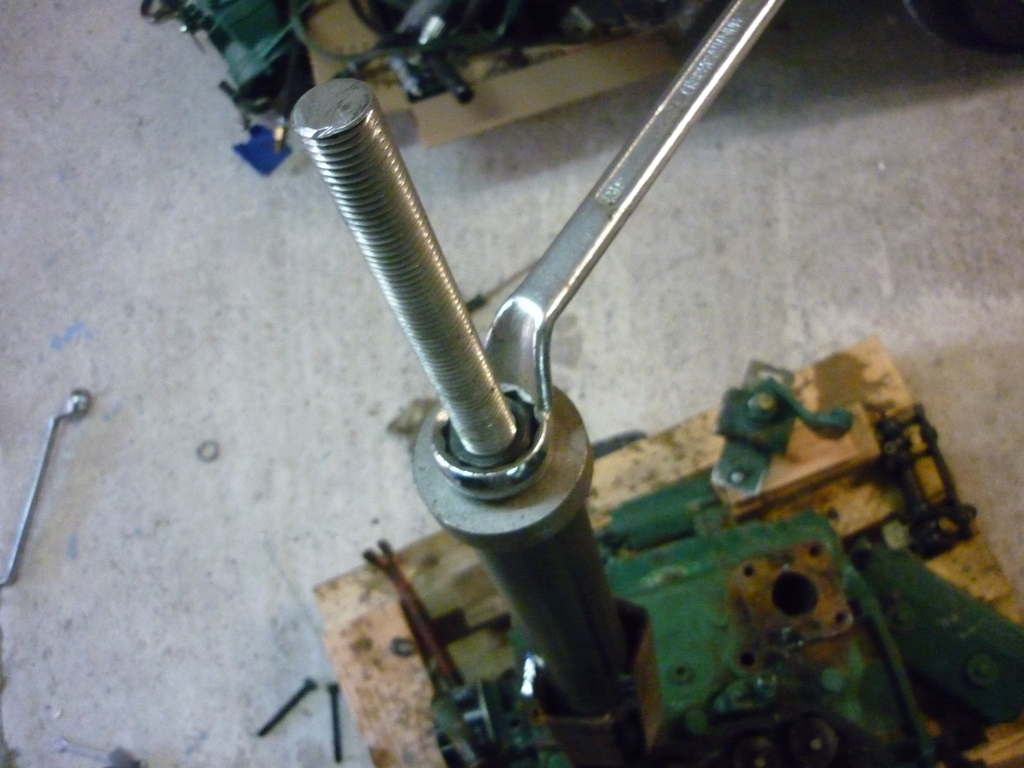 Puisqu'il est question de mon extracteur, je joins une photo. L'écrou inférieur, légèrement arrondi pour s'insérer dans le tube, est vissé pour moitié sur le boulon et pour moitié sur le porte-injecteur. Bien sûr, l'étrier qui bloque le porte-injecteur doit être retiré.