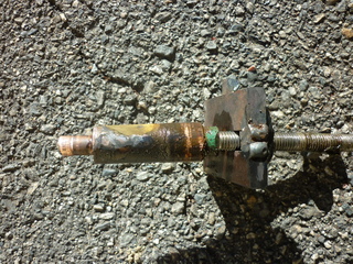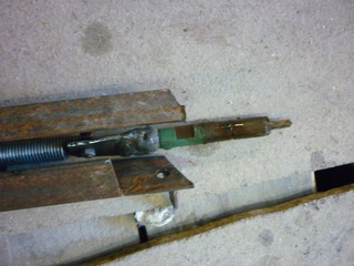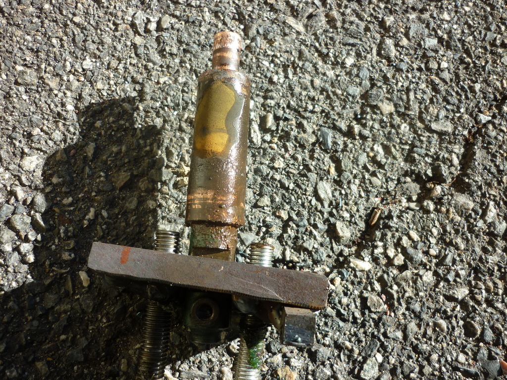 ensuite sur l'injecteur cassé, on peut voir l’extracteur réalisé avec quelques morceau d'acier trouves dans mon bac à merde ...