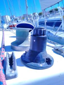 non ce n'est pas un harken ce sont des SII fabriquant français repris par lewmar qui étaient montés sur les Gibsea à l'époque, info prise dans différents post, il y en a 4 de la même série. Les 2 de la bassine sont des double vitesse, aucun soucis pour comprendre la procédure, le coupable sur le roof à tribord et son frère un poil plus petit sur le mât (pas encore démonté mais je suppose que j'aurais le même problème).