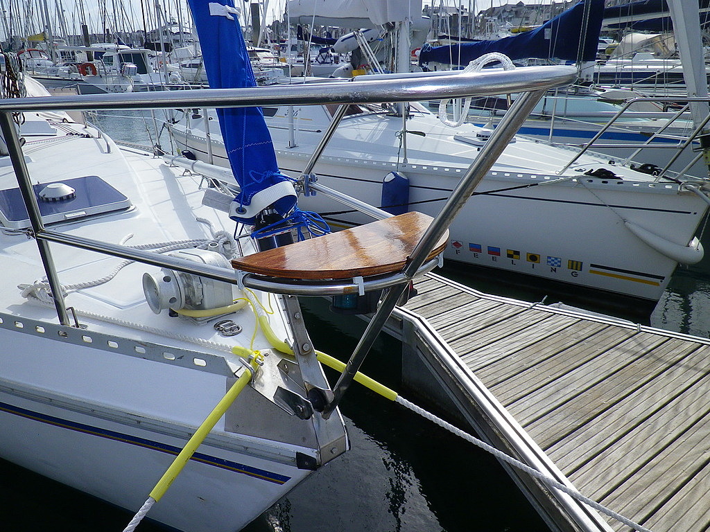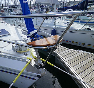 Sur les bateaux plus petits, la descente est souvent à bonne hauteur pour fixer une planche avec un étau.