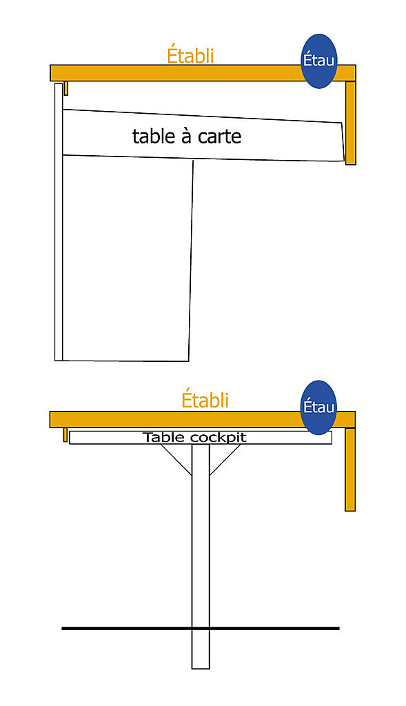 D'ailleurs, ce plateau/établi dont j'ai parlé, pourrait être conçu pour être fixé également sur la table de cockpit, certes pas toujours très stable pour certains modèles…