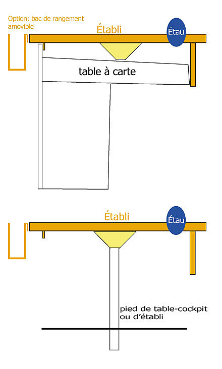 Je pense que la plupart d'entre vous ont compris le système d'établi amovible que je compte réaliser.