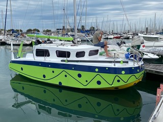 J'ai justement vu un article récemment sur ce bateau . Intéressant à mon avis, une sorte de baluchon d'une taille un peu plus raisonnable / vivable, tout en restant minimaliste et pour aller loin. De mon point de vue c'est un peu l'avenir ou l'idéal des petits voiliers de croisière , une coque à fond plat , si possible avec un saumon protecteur en dessous et deux dérives /quilles latérales lestés ou non, avec un gréement le plus simple possible . Pourquoi pas en y ajoutant une version gréement de jonque , aurique ou autre.