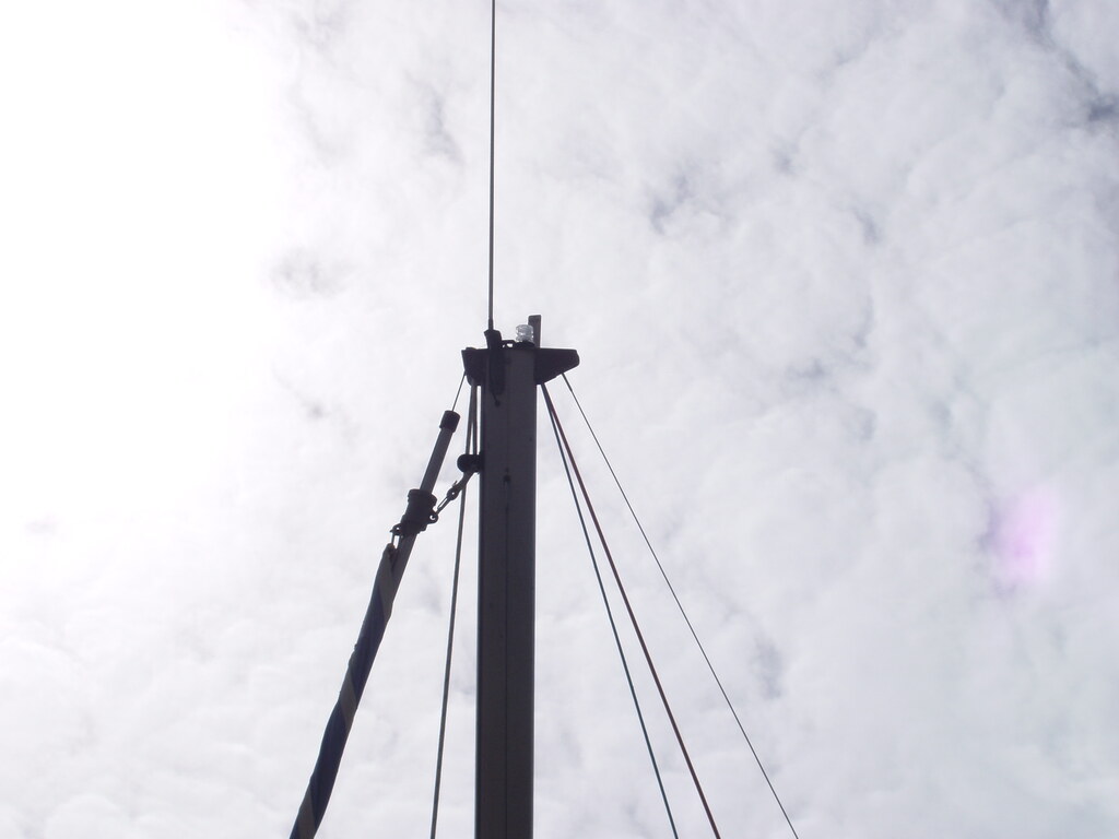 Après changement d'étai, j'ai fixé une petite poulie sur le mât pour changer l'angle de traction.