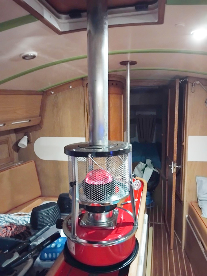 J'étais à bord de Lotus ce week-end et j'ai pu tester le poêle à pétrole reçu quelques jours auparavant.