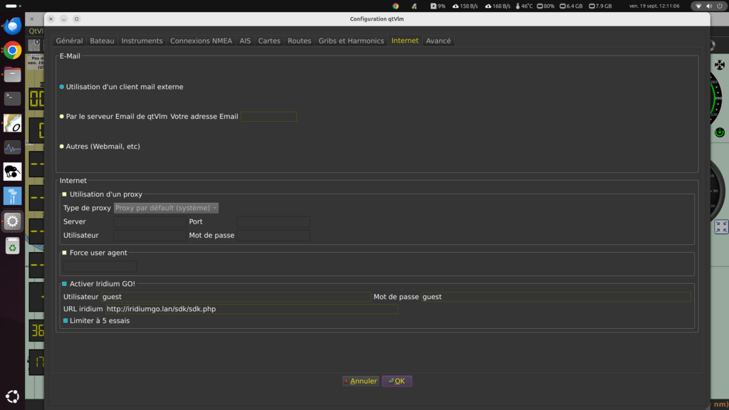 maitai:Oui les données transitent en direct via Iridium GO, sans passer par une messagerie. Le choix pour les emails est pour le mode "normal" cad connexion internet sans igo. Si tu passes par notre serveur ca évite juste d'avoir à envoyer le mail soit même, il faut juste mettre ton adresse email à laquelle tu veux recevoir la réponse de saildocs, par exemple.Pour les gribs ECMWF etc. nous proposerons bientôt notre propre serveur de gribs en plus des options déjà existantes. Dans ce cas précis et en attendant on doit pouvoir télécharger un grib ECMWF directement dans qtVlm/IGO si on a un abonnement Squid.·le 19 sept. 07:13