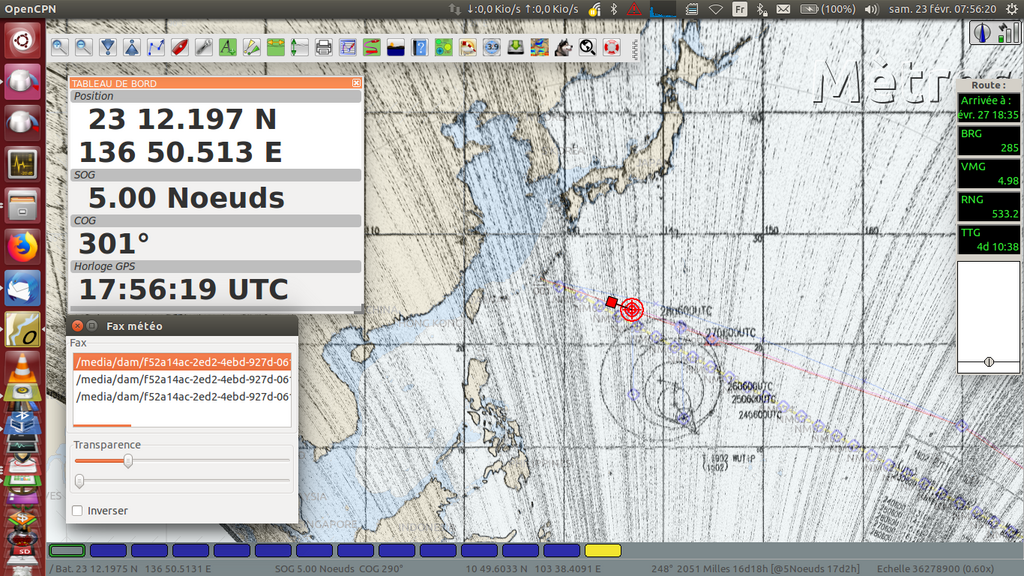 Le problème aussi que je rencontre est lié à l’intégration et à la superposition du fax sur qtVlm quand on les télécharge manuellement. Il me semble qu’il faille renseigner manuellement les coordonnées des coins de l’image, ce que je ne sais pas faire. En revanche, sur OpenCPN, on peut sélectionner les points de coordonnées directement sur l’image, ce qui est bien plus pratique.