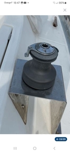 J'ai vu un First 265 modifié à Marseille port de pointe rouge de mémoire...peut être un clone de Pitalugue avec comme un pot de fleur à l'envers stratifié...découpé pour venir s'insérer , à l'hiloire...et permettre au winch d'être fixé sur une surface plane mais circulaire...s'agrandissant en descendant vers le pont.