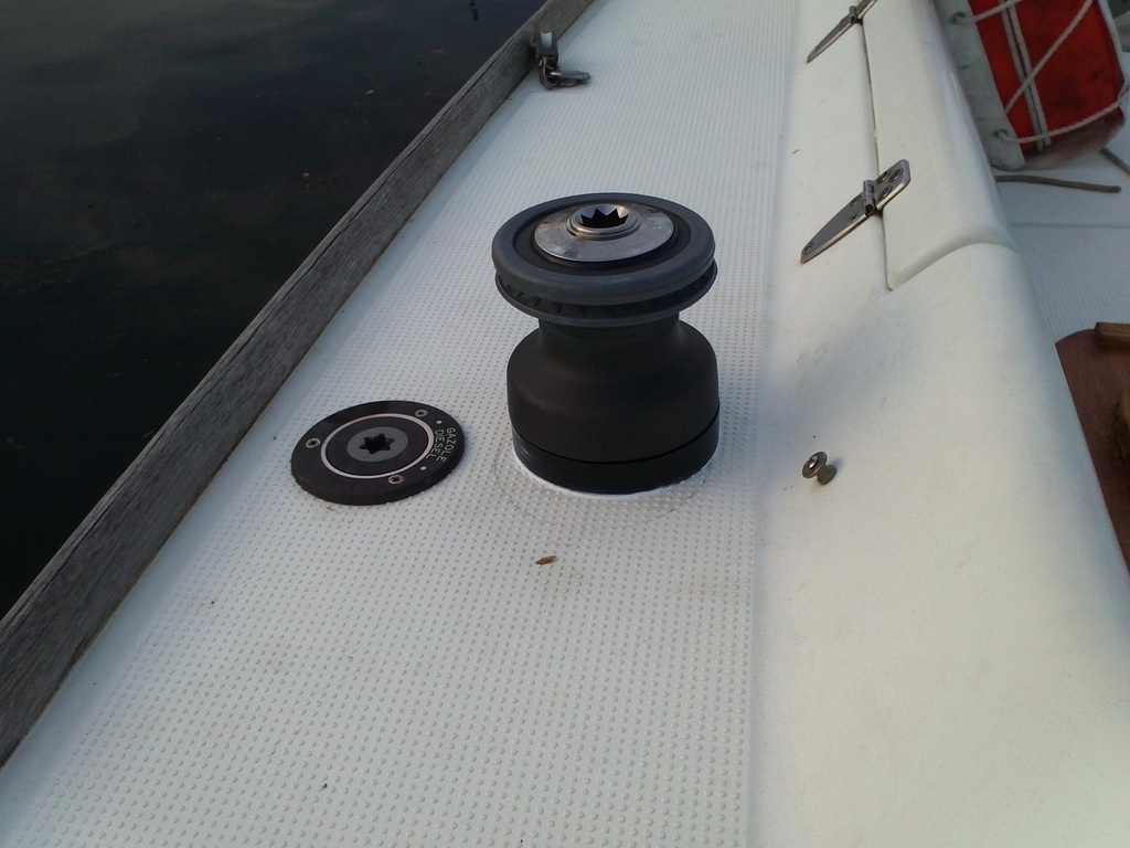 Effectivement, l'ajout de winches est un peu "lourd", mais d'autres l'ont fait. Cela consiste en la réalisation de platines supportant lesdits winches, elles-mêmes fixées aux hiloires. Ensuite, il peut être nécessaire de modifier les angles de tire du génois, en implantant des rails à plat pont. De fait, les rails d'origine ne servent plus que de main courante. Ces rails d'origine se règlent bien grâce à de petits bouts qui reviennent au cockpit et qui se bloquent à la longueur voulue.