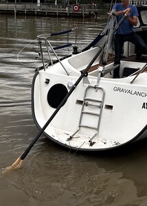 Sur mon Romanée l'aviron m'a servi régulièrement lors d'une panne moteur pour finir un accostage après avoir affalé la voile , on contrôle mieux la vitesse d'arrivée. J'ai traversé une fois tout le port des Minimes jusqu'au Traveling pour réparation du moteur. L'aviron fait 4m de long