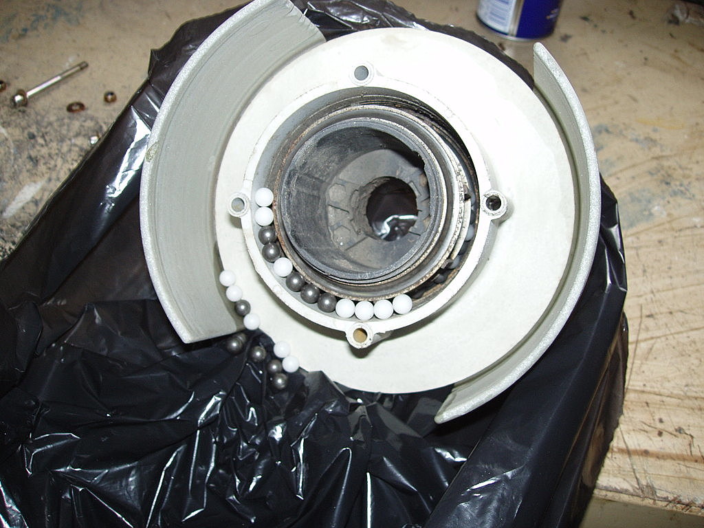 Donc billes en "plastique" avec des propriétés autolubrifiantes qui rendent inutiles la graisse ou l'huile, dont le seul effet est de durcir et de bloquer les billes.