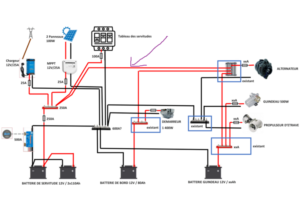 La batterie dédié au guindeau est déjà existante donc je ne souhaite pas modifier cette partie.