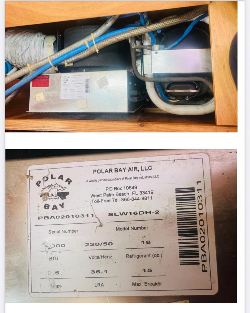 Tu as le nom du fournisseur pour la clim? J'en cherche justement une, idem 230v et échangeur à eau de mer. Merci!