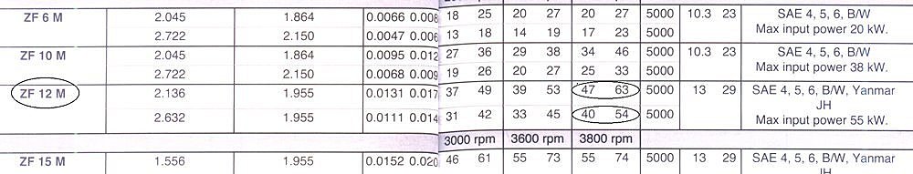 La capacité puissance moteur maxi le ZF12M pour 3600T/mn