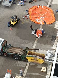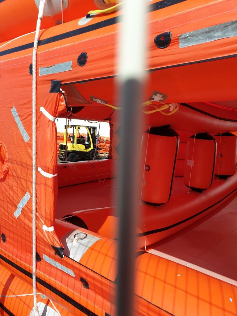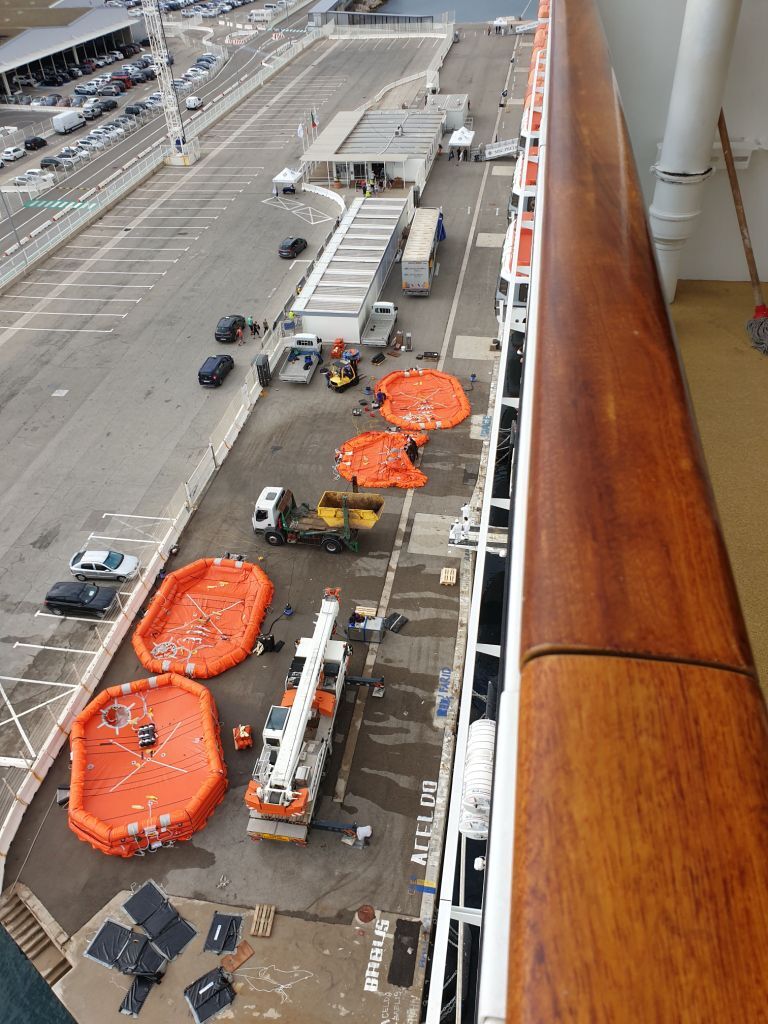 Pas une révision mais un déploiement! Sur les ferries et paquebot l'ensemble des systèmes d'évacuation doit être testé sur une durée de 5 ans , comme généralement il y en a 4, ça fait un déploiement par an.