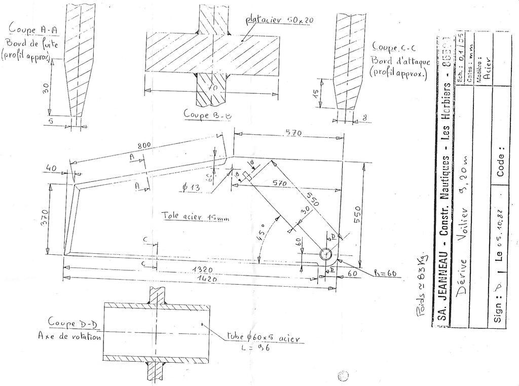 J'avais oublié que sur les plans de la dérive, on trouve les cotes du tube dans lequel passe la bague et l'axe, voilà tous les docs que j'ai.