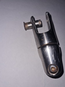 Réponse à Crazy Cat-29 Août 2016 : comme il le dit, la torsion latérale déformant la chape inox de hauban était prévisible car ne laissant pas la possibilité de s'orienter à 90° de la verge de l'ancre.