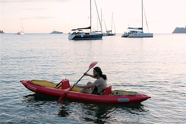 A bord de mon voilier "INOX" j'ai 3 embarcations: une annexe pliante pour transporter les choses lourdes et encombrantes, un petit canot gonflable de 6 kg que je peux emporter avec moi lorsque sur la plage où j'aborde il y a des enfants démolisseurs, et un kayak dont je me sers par très gros temps, puisque c'est le seul qui peut braver les grosses vagues et les rouleaux lorsque mon voilier est ancré loin de l'endroit propice pour débarquer à terre.