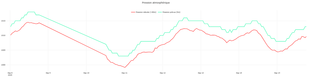 Sur mon iPhone 7 j’utilise l’application Barometer qui utilise le capteur de l’iphone Et enregistre jusqu’à 30 jours la pression et sort les infos comme sur ton vieux barographe.