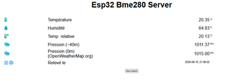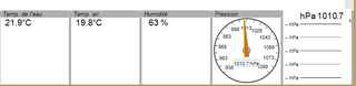 A une autre fréquence, l’Arduino lit ce fichier texte pour en tracer la courbe (pression et température) et calculer les indicateurs de tendance. La courbe est historisé sur 6 jours. L'échelle est réglable.