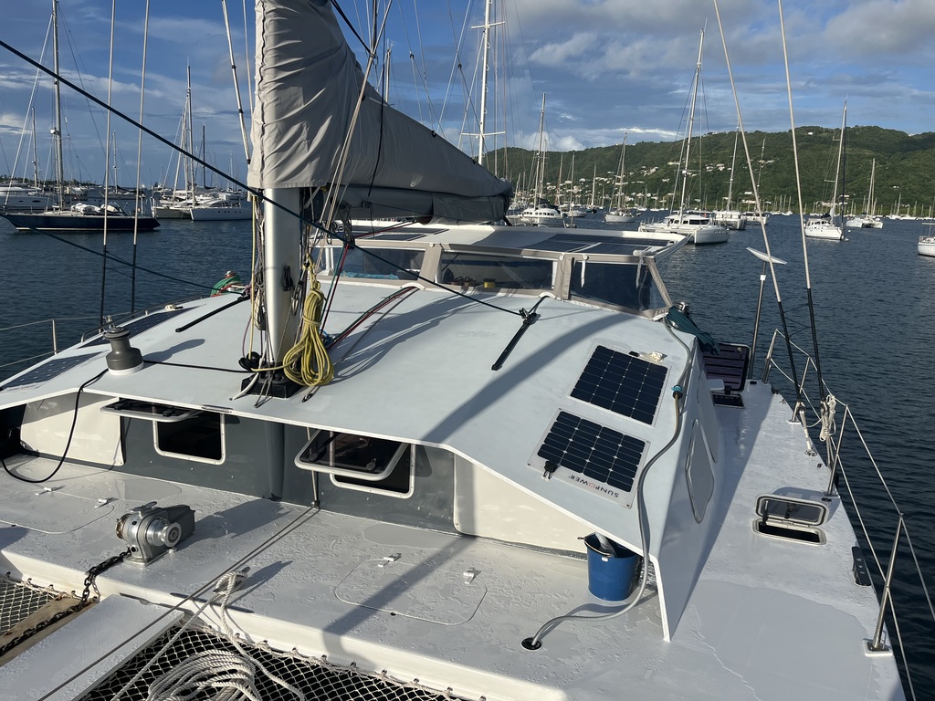 Vaisselle à l eau douce , le Dessal assure bien , on fait attention mais sans se priver . Le toit aussi , rigide qui nous abrite du soleil fait récupérateur d eau