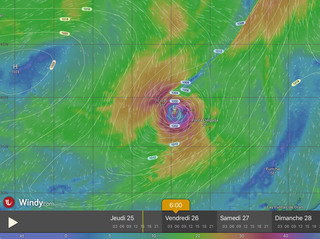 L'ouragan GABRIELLE se déplace très rapidement, plus de 30 nds et va balayer toutes les îles avec des vents de 80 nds...