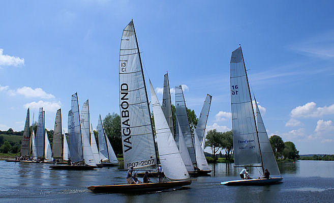 Dans le petit temps......un mat très haut, une très grande surface de voile et un poids de la coque très très petit.....style sandbagger.