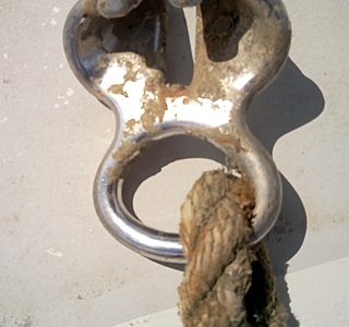 c'est sur le davier que les amarres/câblots s'abîment le plus en frottant sur les joues anguleuses du davier;