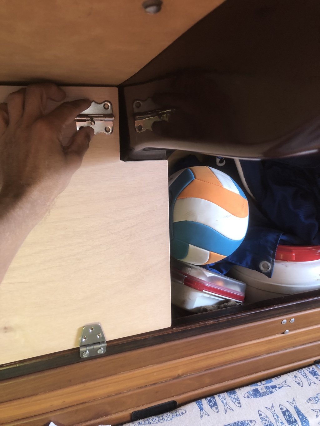 Sur mon bateau elles n'ont pas toute le même écart par rapport a la varangue interne, perce de 5mm et ne va pas plus loin ! Ça suffira largement pour ton loquet