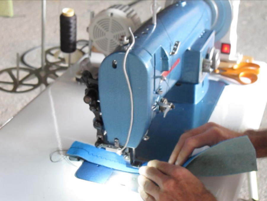 Nous avons équipé une durkopp, elle sert aussi bien à coudre des bandes uv, des sangles de tetière ou des tauds qu'à recoudre des slips.