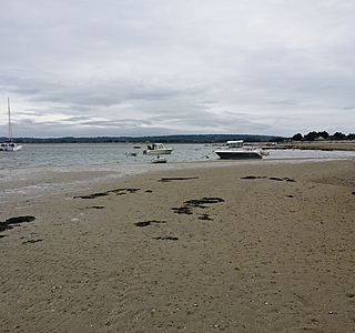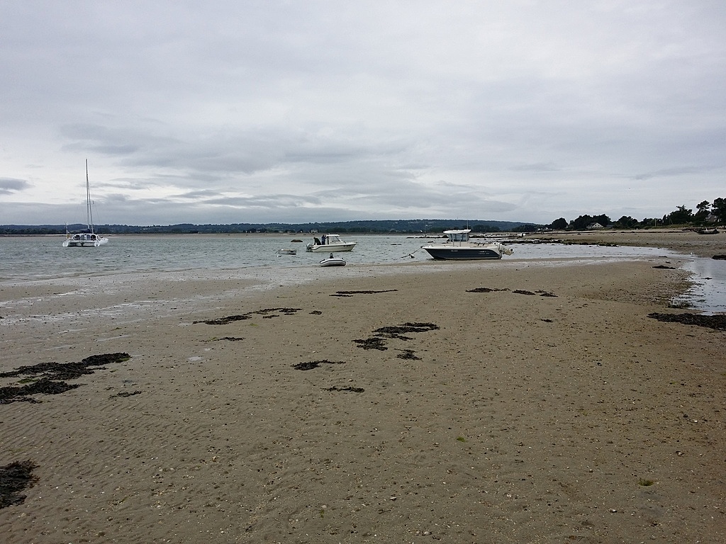 Il y a une perche rouge et une perche verte à l'entrée de la baie près de la Pointe de Jonville. Ensuite tu continues vers l'Ouest en direction du fond de la baie et du Pont de Saire. Il y a quelques cailloux tout le long de la plage.