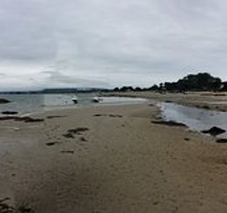 Bonjour. Le coin de Jaoul devant la petite maison blanche ou bleue en bordure de plage.