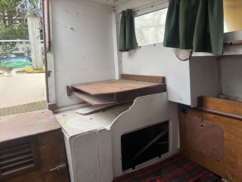 Je regrette le ton de quelques réponses qui précédent, personne n'a la science infuse, on doit pouvoir poser des questions sans se faire traiter de troll… même si l'avenir doit le prouver. Cependant, je suis d'accord sur le fond. Ce bateau ressemble à une construction amateur improvisée, certainement peu de qualités de navigation, dans un état critique, et surtout en bois. Ce n'est absolument pas ce qu'il faut pour un débutant, et un non-débutant passerait son chemin sans même un regard. Un bateau en bois, même en bon état, c'est un gouffre au niveau entretien, temps et finance. Quid du moteur, organe important en fluvial ? On trouve souvent des petits bateaux en polyester à donner, petit tirant d'eau ou dériveur, qui seront bien mieux adaptés, et possiblement propulsés par un petit hors-bord. Laisse tomber !