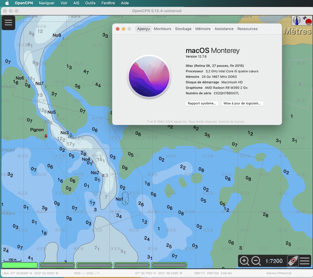 Pour cela il faudrait que je le mette à jour, mais cela me ferait perdre tous les UserPermit de la collection de cartes Navionics que j'ai achetées (à des prix raisonnables l'époque...) via Fugawi/X-Traverse (maintenant disparu) et que j'utilise avec MacENC...