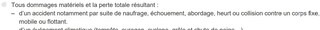 2)ma police couvre "... accident par suite de ... heurt ou collision contre un corps fixe, MOBILE, ou flottant". Jusqu'ici tout va bien. Mais: