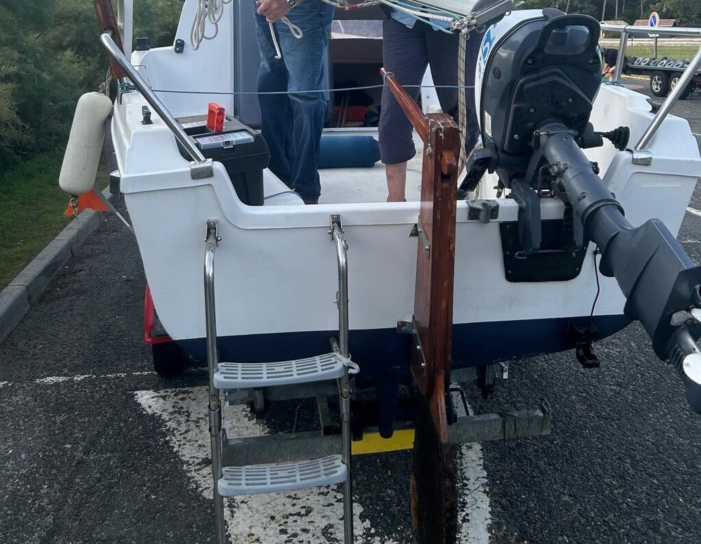 Dans le prolongement de mon expérience 2023 sur un Kelt 620, j'ai utilisé le reste du parafouling dont la longévité m'avait été garantie par le vendeur/fabricant, sur un pêche promenade, destiné aux pêcheurs de ma famille, à savoir un Arcachonnais, tout en limitant cependant l'application au seul safran, la carène de ce bateau ayant été traitée au SEAJET 038.