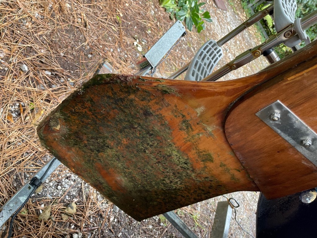Je précise que ce safran avait été poncé à nu, puis intégralement revêtu de trois couches de vernis international schooner, la partie basse ayant quant à elle était bénéficiaire d'une couche de parafouling.