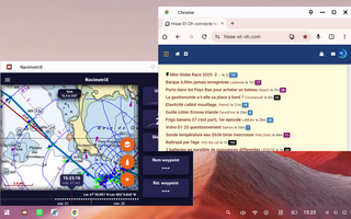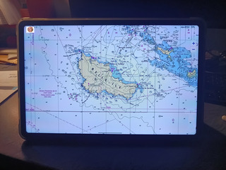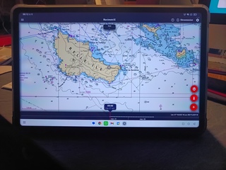 Les photos sur tablette 12 pouces Android 15 en mode PC multi-fenêtres. sur la table à cartes de mon bateau
