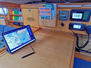 Une configuration multi écrans n'est pas si compliquée. Comme Navimetrix tourne sous Windows ou Mac OS (et Linux en 2026),il suffit d'installer un PC à la table à cartes avec un écran standard, et un ou deux écrans tactiles étanches et lisibles en plein soleil (ça existe chez SailProof) au(x) postes de barre, connectés en HDMI.