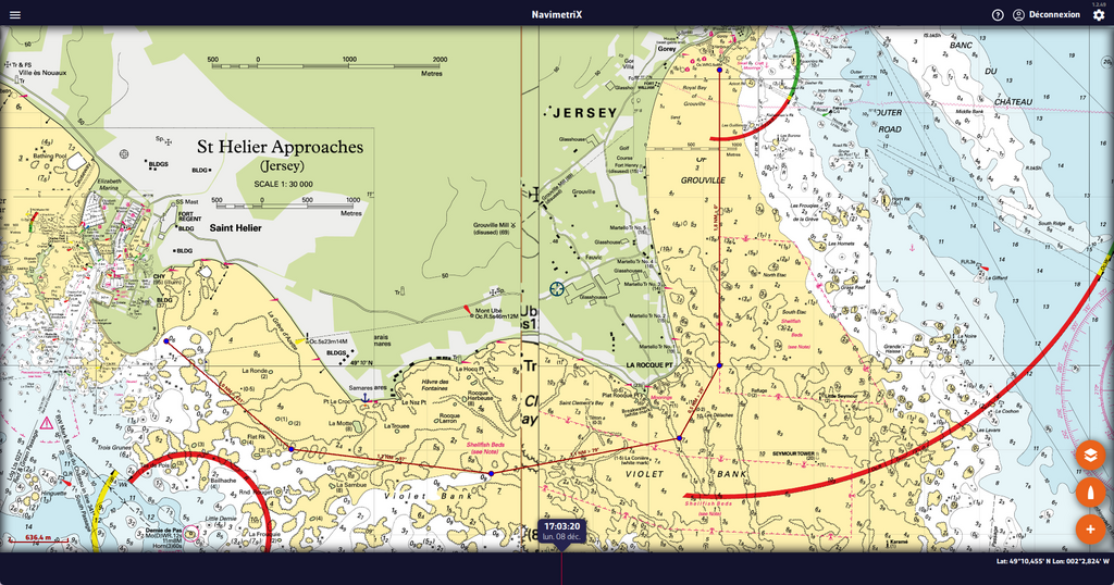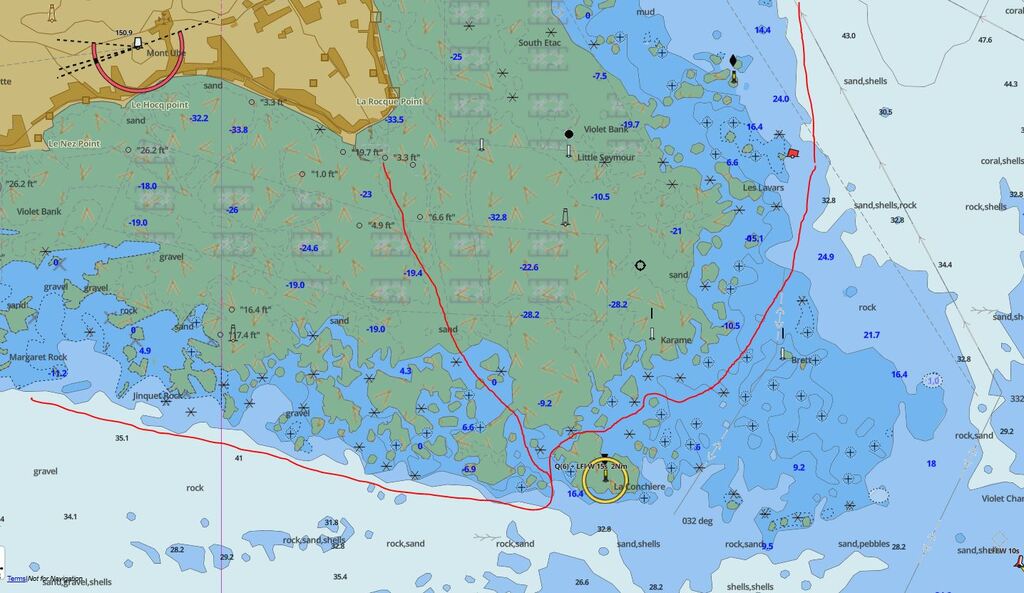 red sky:Lorsque j'y vais pour échouer, c'est avec Navionics et un œil sur ce qu'il y a sous la surface. Pour aller à St Helier, c'est un peu à l'arrache autour de la marée haute, il y a assez d'eau partout. J'évite quand même les affleurants de la carte. À part autour de Karame où ça remonte dur, c'est assez plat lorsqu'on s'éloigne du bord.·le 10 déc. 14:23