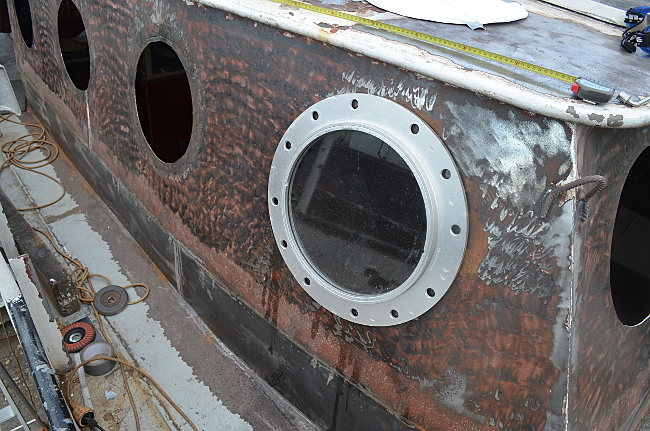 donc pour tes hublots tu peux t'inspirer du traitement du début jusqu'à la peinture isoler les trous de l'encadrement avec des canons en plastique et une rondelle nylon sous chaque vis on en trouve en forme cuvette pour que les têtes fraisées ne dépassent pas ..