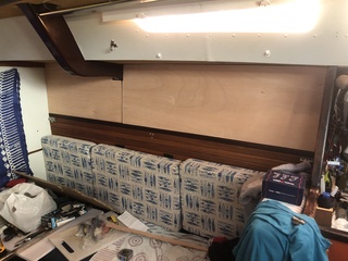 Je fais un encadrement tout autour pour supporter la porte du placard mais comme le CP du vaigrage fait seulement 5mm je vais mettre un paquet de vis. Et j’aimerais que les montants verticaux tiennent bien aussi!