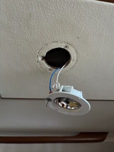 Bonsoir, je dois remplacer les spots du carré, il s’agit d’un Dufour 365. Je ne suis pas sur le bateau mais il me semble que les diamètres d’encastrement sont assez petits par rapport au standard (45 ou 50mm). J’avais déjà effectué des recherches mais non concluantes. Je ne souhaite pas me lancer dans l’agrandissement des trous, je crains la catastrophe avec le vaigrage. Y a t’il un propriétaire de la gamme grand large qui a déjà remplacé les siens svp ? Merci !