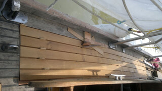 Pose de lames en pin d'Oregon sur le pont de mon joli Morgann