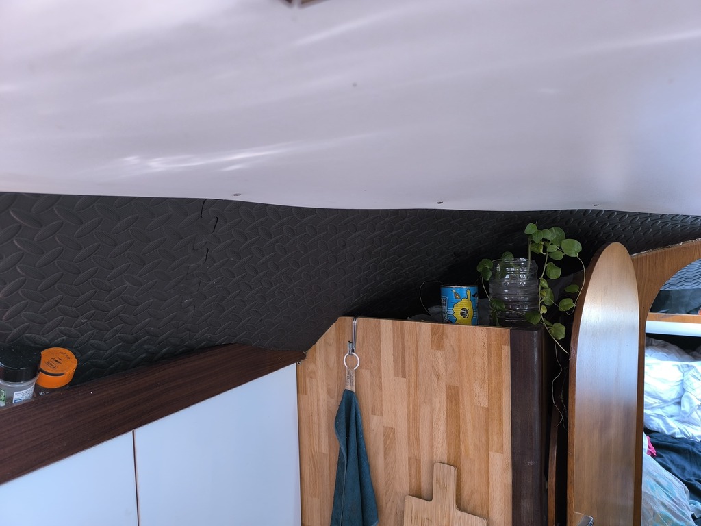 Il se vend du vaigrage sur le net ou dans des ship, tu trouve les couleurs les plus communes, d’autre posent du liège, le lambris pvc c’est pas mal en plus c’est pas trop rigide donc ça va prendre les formes et les arrondis.